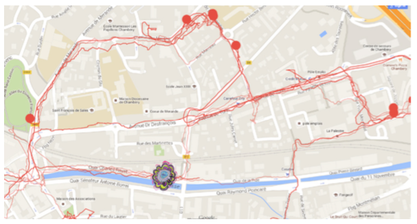 Testeurs : Amel-Sonia Najlaoui, Martin Chapuis, Yoann Létocart.Nous avons testé pendant une semaine prolifération et génération de données sonores sur une carte numérique à partir des mouvements et déplacements de "testeurs" pendant une semaine. Chaque Nymphéas collés dans la ville de Chambéry enregistrent le passage des testeurs et transforment le son. Testeurs : Amel-Sonia Najlaoui, Martin Chapuis, Yoann Létocart.référence hommage aux peintures de Claude Monet dont les nénuphares jouent le rôle de point de connexions d'espaces de germination,